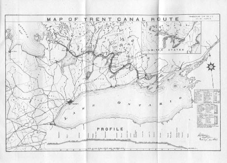 Richard Birdsall Rogers published this material which included maps of the Trent Canal. The narrative explained the history of the area, the dimensions of the Canal, description of the Route, the Hydraulic Lock No. 1, Water Supply and Barge Navigation. Following are a sample of the images found inside the publication.