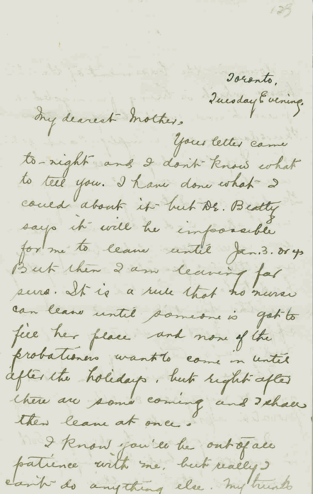 On June 1, 1917, Helen reported for duty at the Canadian Convalescent Hospital at Clarence House. She remained there throughout most of the summer and travelled with friends to the Lake District in late August 1917. From mid-September until early November 1917, Helen spent her leave in Canada, the first time she had been home since her departure in February 1915. Upon her return to England, Helen was posted to serve at Buxton in Derbyshire. By March of 1918 she was suffering from bronchitis and was transferred to Northwood for five weeks convalescence. On April 15, 1918, she reported for duty at Matlock Bath, Derbyshire. Her Return to Canada... Following the signing of the Armistice, Helen returned to France in the winter of 1919, serving at Dax and Dunkirk, and travelling through Northern France en route to Germany. She also served in England for a time in the spring of 1919. On May 23, 1919 Helen sailed for Canada on the S.S. Megantic and continued to serve in hospitals in Toronto. The official end of service came with the General Demobilisation on October 31, 1920. On April 25, 1921, Helen married Captain Gerald Marryat who had served during World War I with her brother Eric in the Canadian Engineers. They settled at Ashfield House in Hastings and Helen became a well-known historian and newspaper columnist. Helen Fowlds Marryat died on June 16, 1965. Her records and papers were bequeathed to Trent University. Helen Fowlds Marryat was one of over 2500 Canadian nurses who served overseas in the First World War. Nurses had served in the Northwest Rebellion and in South Africa during the Boer War but had never before been officially organised into a unit of the Canadian Expeditionary Forces. They were also the only nurses who enlisted with officer rank. By 1918, nurses were serving in a total of 30 military hospitals and casualty clearing stations in Europe, Greece, Malta and Egypt. Casualties amongst the nurses themselves were considerable.