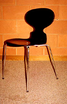 Jacobsen's "Oxford 1965" chair was chosen for the A.J.M. Smith conference room in Bata Library. These tall-backed side chairs were covered in tan oxhide and featured backs of graceful curvature with aluminum swivel pedestal bases. A similar chair was first designed by Arne Jacobsen for St. Catherine's College, Oxford. There were 35 of these "Fritzhansen #3171" chairs purchased for the conference room in 1969. They disappeared in 2002.